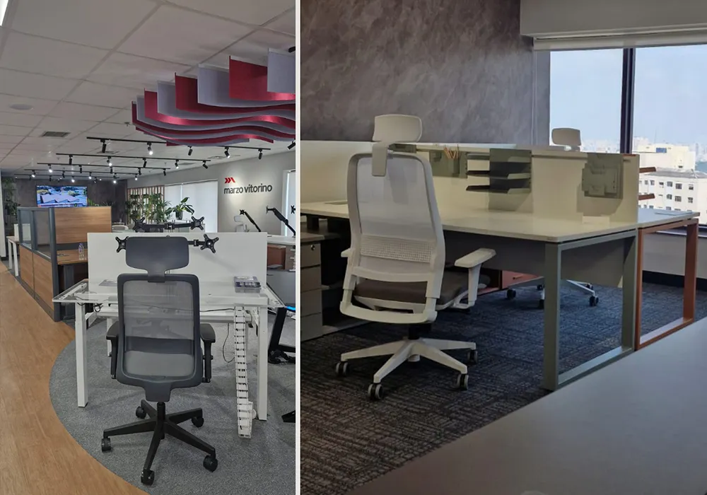 Com uma ampla variedade de linhas e acabamentos, o novo showroom apresenta novidades e lançamentos exclusivos que reforçam o compromisso da Marzo Vitorino com a inovação, a ergonomia e o design funcional. Cada ambiente demonstra como o mobiliário corporativo pode aliar estética, produtividade e bem-estar em diferentes formatos de trabalho.