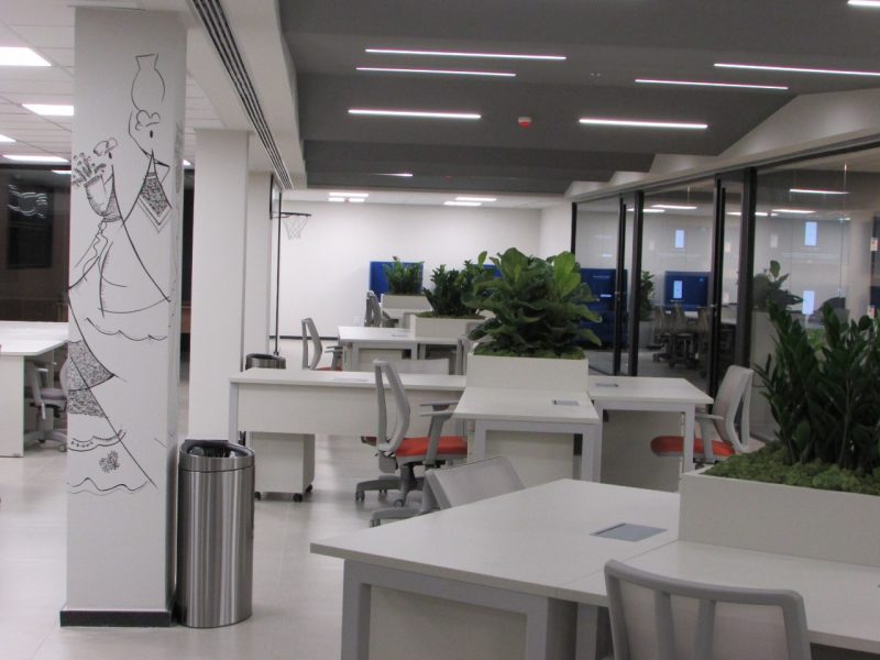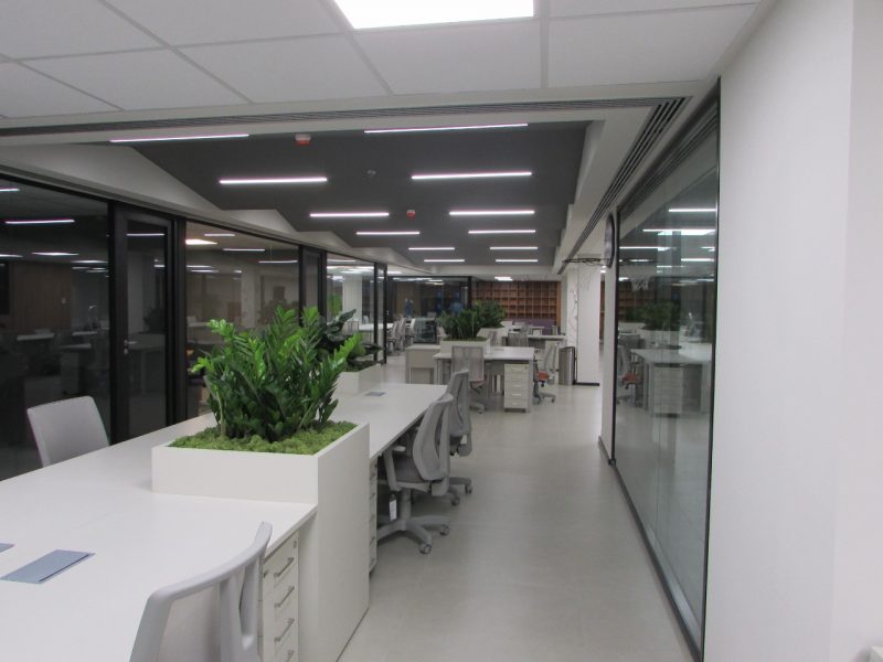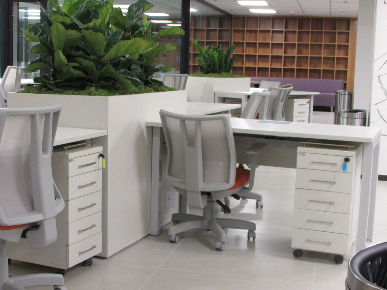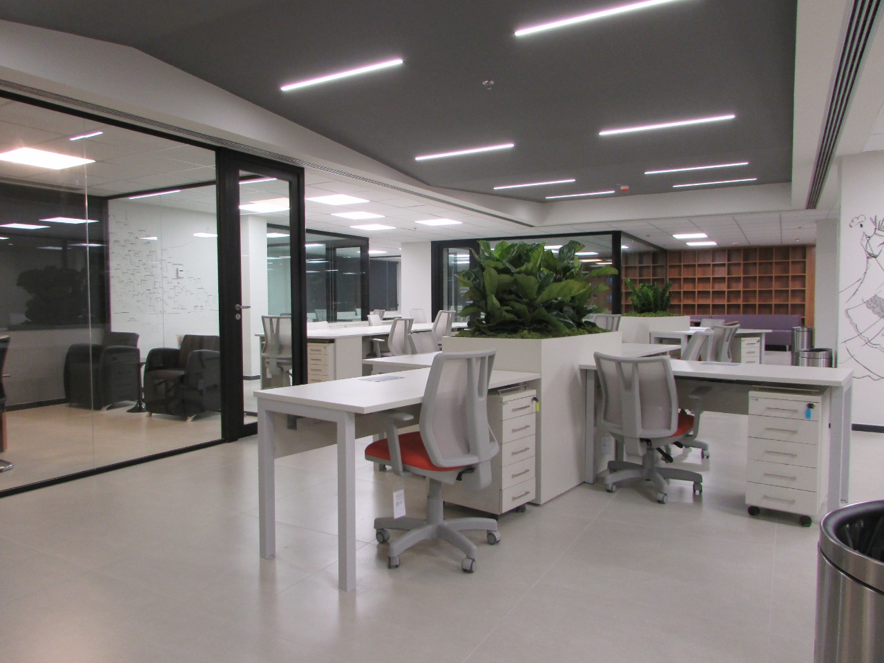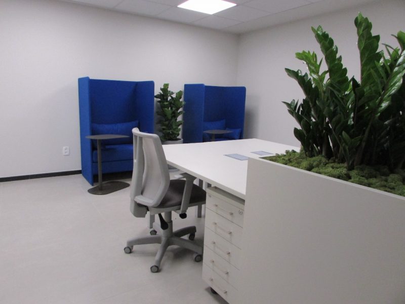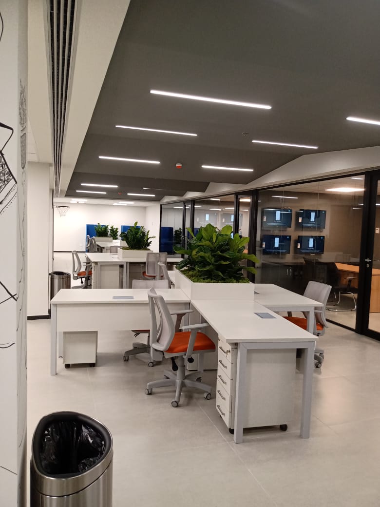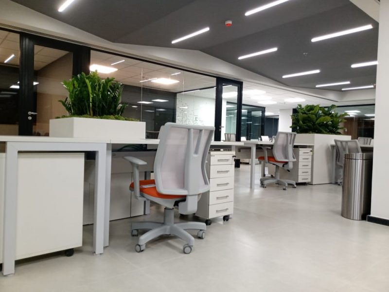 Para esse projeto apostamos em uma linha com características inovadoras e que estimulassem a produtividade e, sobretudo, o conforto dos colaboradores. Dessa forma, buscamos criar espaços dinâmicos que contemplasse cadeiras ergonômicas Addit e plataforma da Linha ARQ- Marzo Vitorino e Reuniões Work Pro com conectividade embutida. Jardineira foram agregadas de forma estratégicas para siadas de fios pelo chão de forma não aparente e para valorizar um ambiente biofílico que é sempre bem vindo em qualquer ambiente.