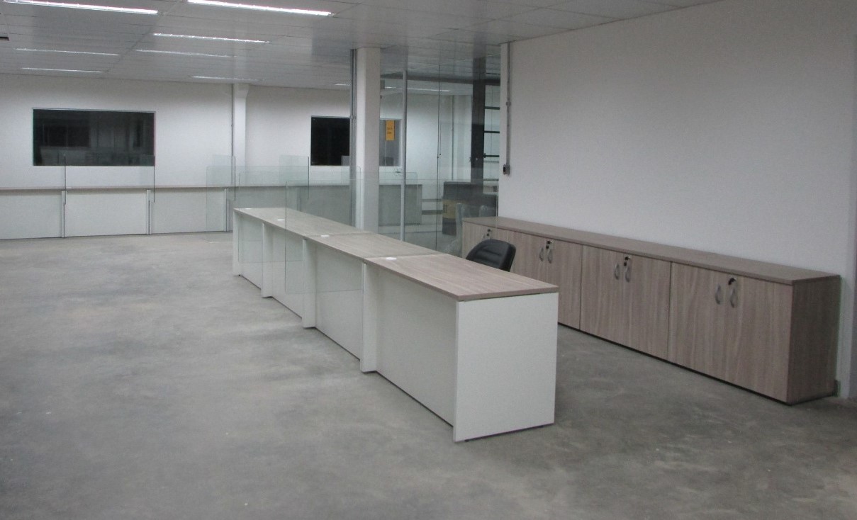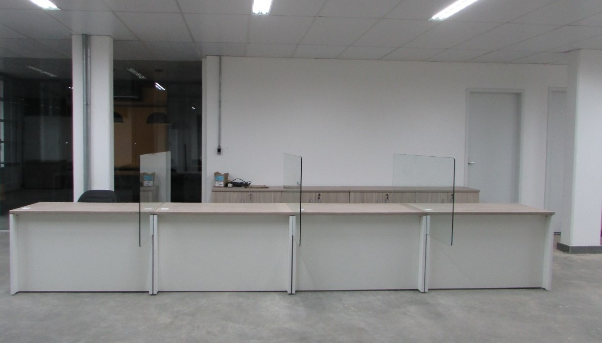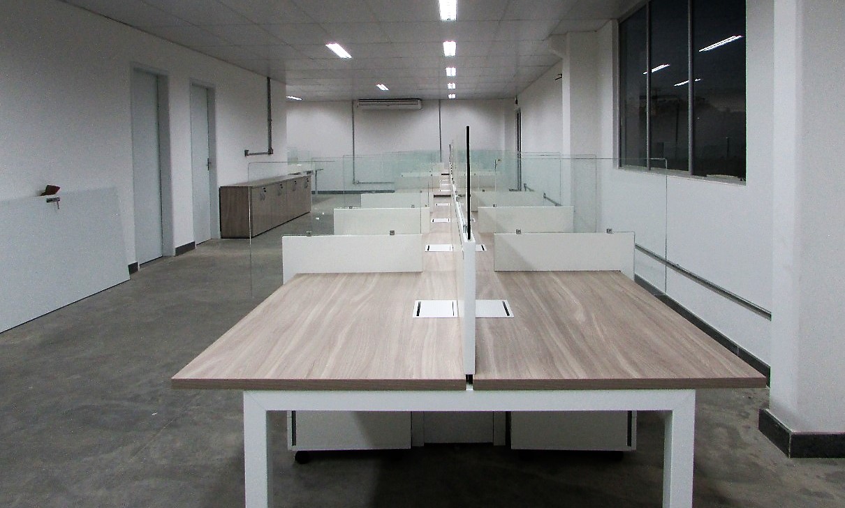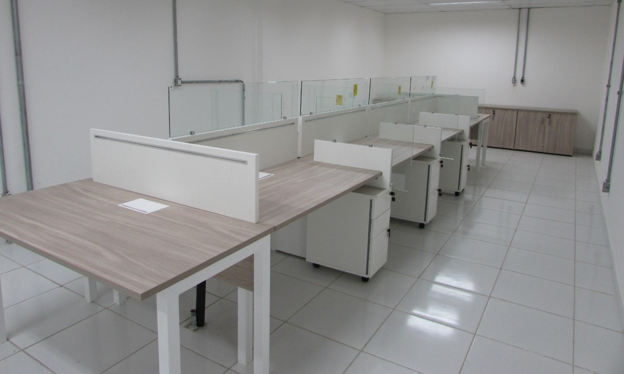 Esse projeto exigiu algumas adequações para o retorno aos escritórios pós pandemia. Divisória especiais de vidro foram adicionadas. O ambientes operacionais com plataforma de trabalho Prima Arq – pés trave e divisórias frontais e laterais. Sala de reunião foi composta pela linha Imperia Premium e cadeira Liss com esconsto em tela.