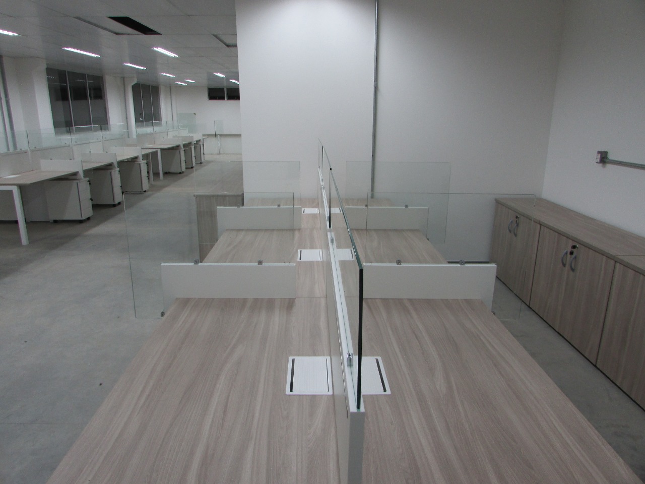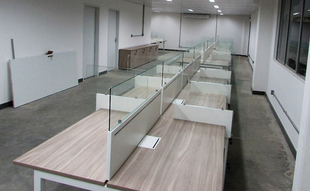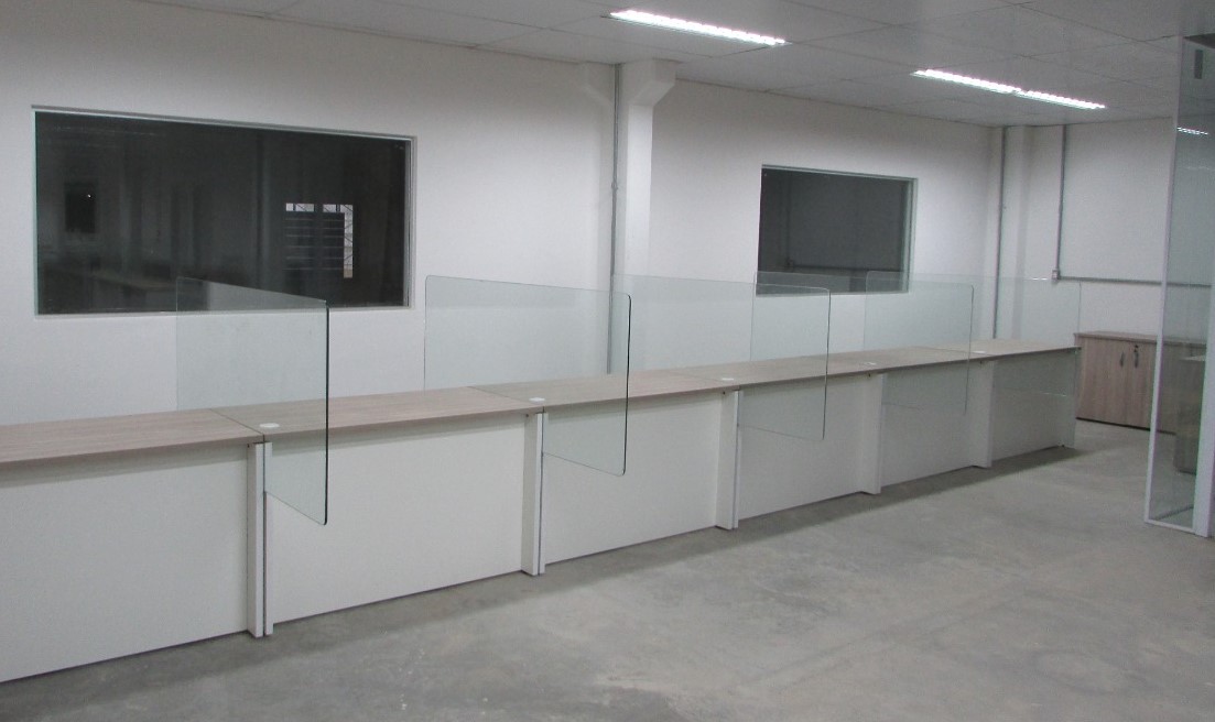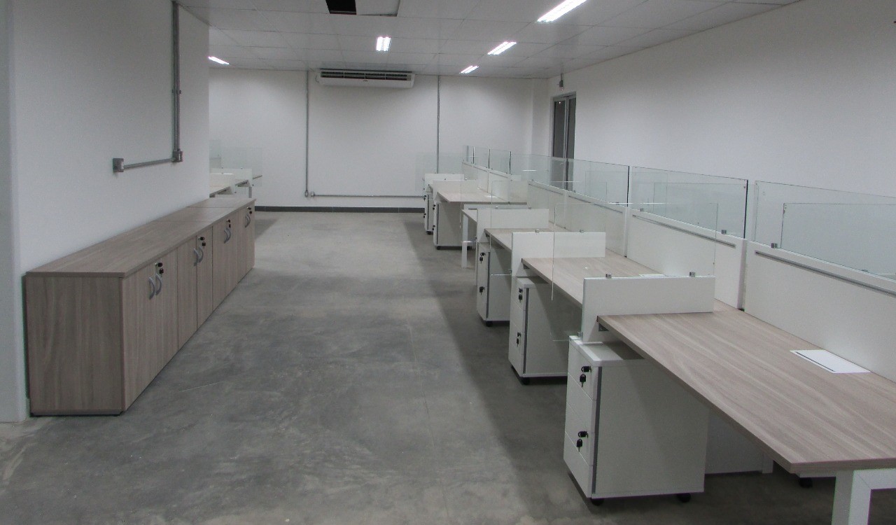 Esse projeto exigiu algumas adequações para o retorno aos escritórios pós pandemia. Divisória especiais de vidro foram adicionadas. O ambientes operacionais com plataforma de trabalho Prima Arq – pés trave e divisórias frontais e laterais. Sala de reunião foi composta pela linha Imperia Premium e cadeira Liss com esconsto em tela.