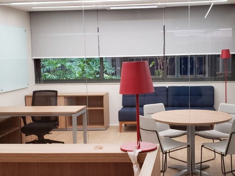 Temos o prazer de apresentar um dos nossos projetos mais recentes, realizado em parceria com uma arquiteta renomada. Esse ambiente corporativo reflete o que há de melhor em design, funcionalidade e conforto, elevando o conceito de espaço de trabalho moderno.